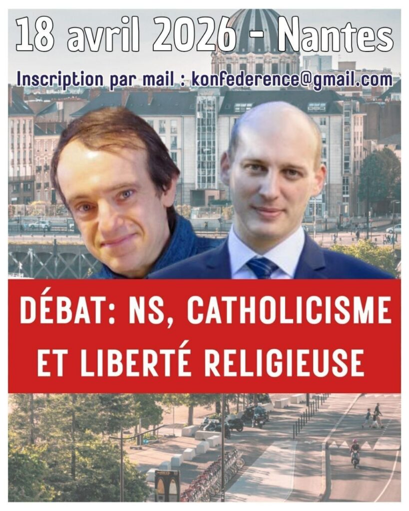 Samedi 18 avril à Nantes : conférence de Quentin Douté, secrétaire général du MNC, et de Vincent Reynouard, sur le thème national-socialisme et catholicisme, suivi d’un échange/débat.