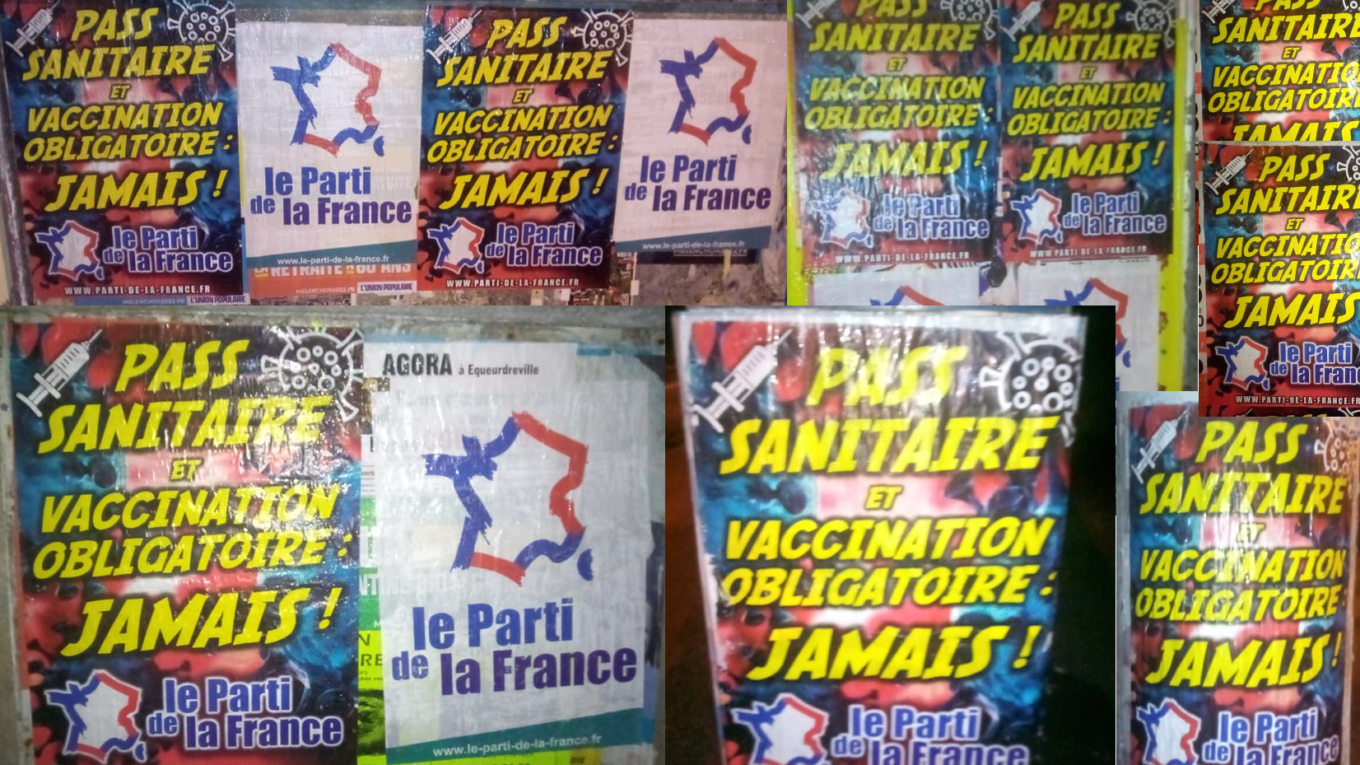 Les affiches du Parti de la France contre la tyrannie sanitaire sont en cours de collage dans...
